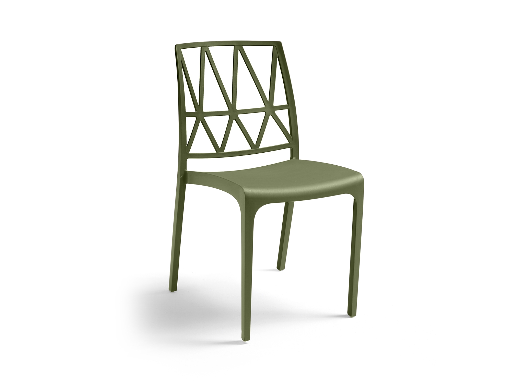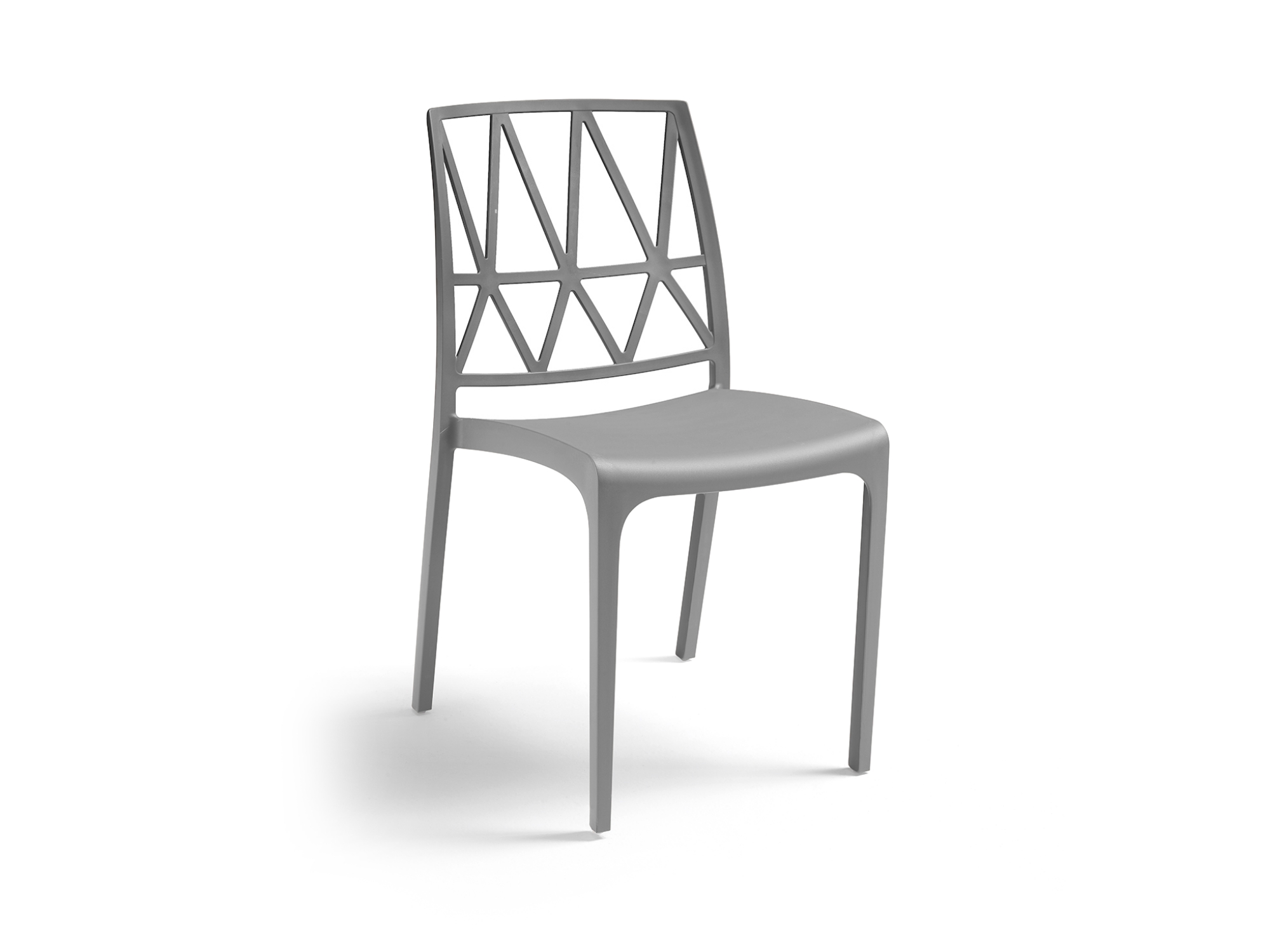 Sedia monoblocco impilabile,  in polipropilene e fibra di vetro.